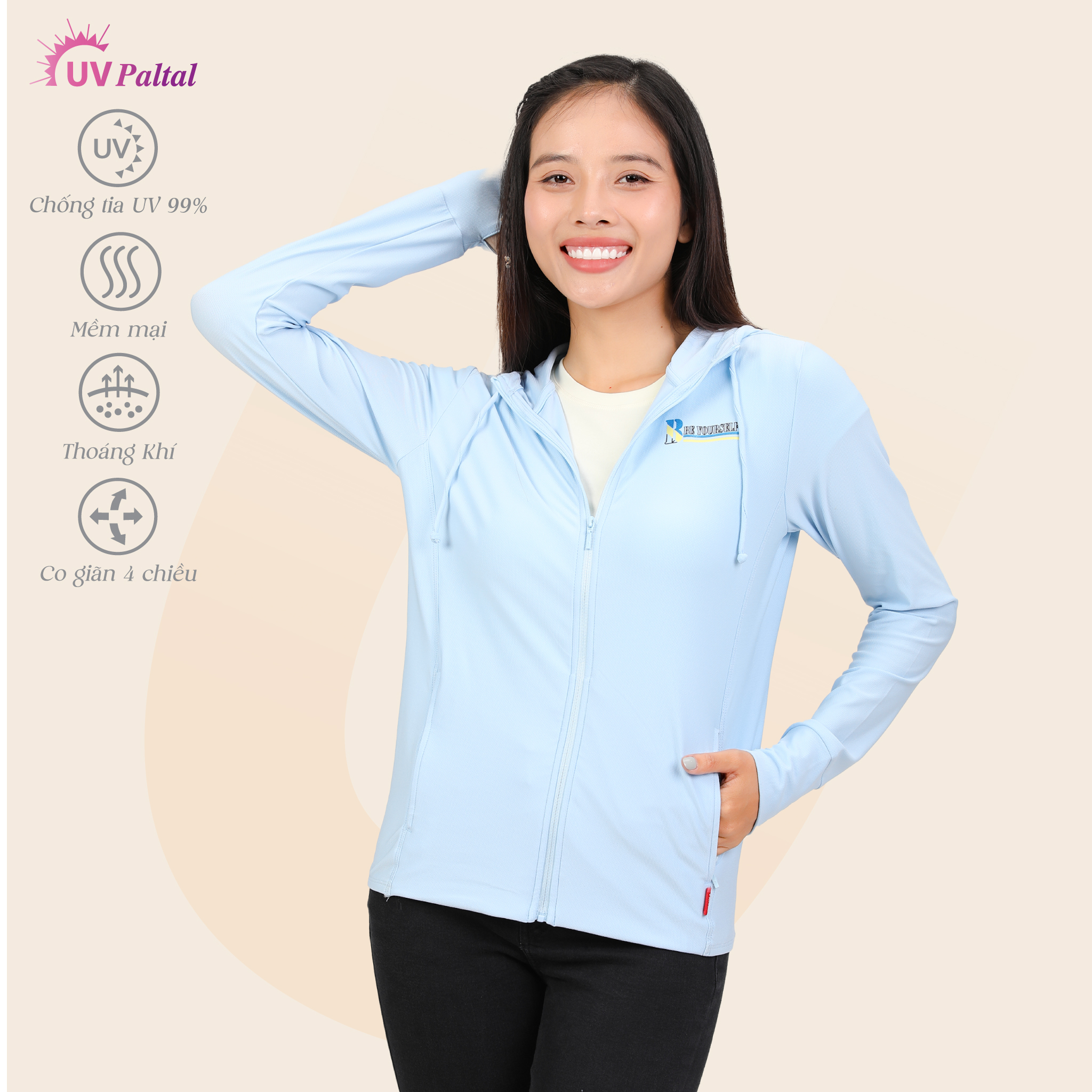 Áo khoác nữ chống nắng, chống UV chất poly cát logo UV đổi màu 311p 1297 KHUYẾN MÃI - ƯU ĐÃI