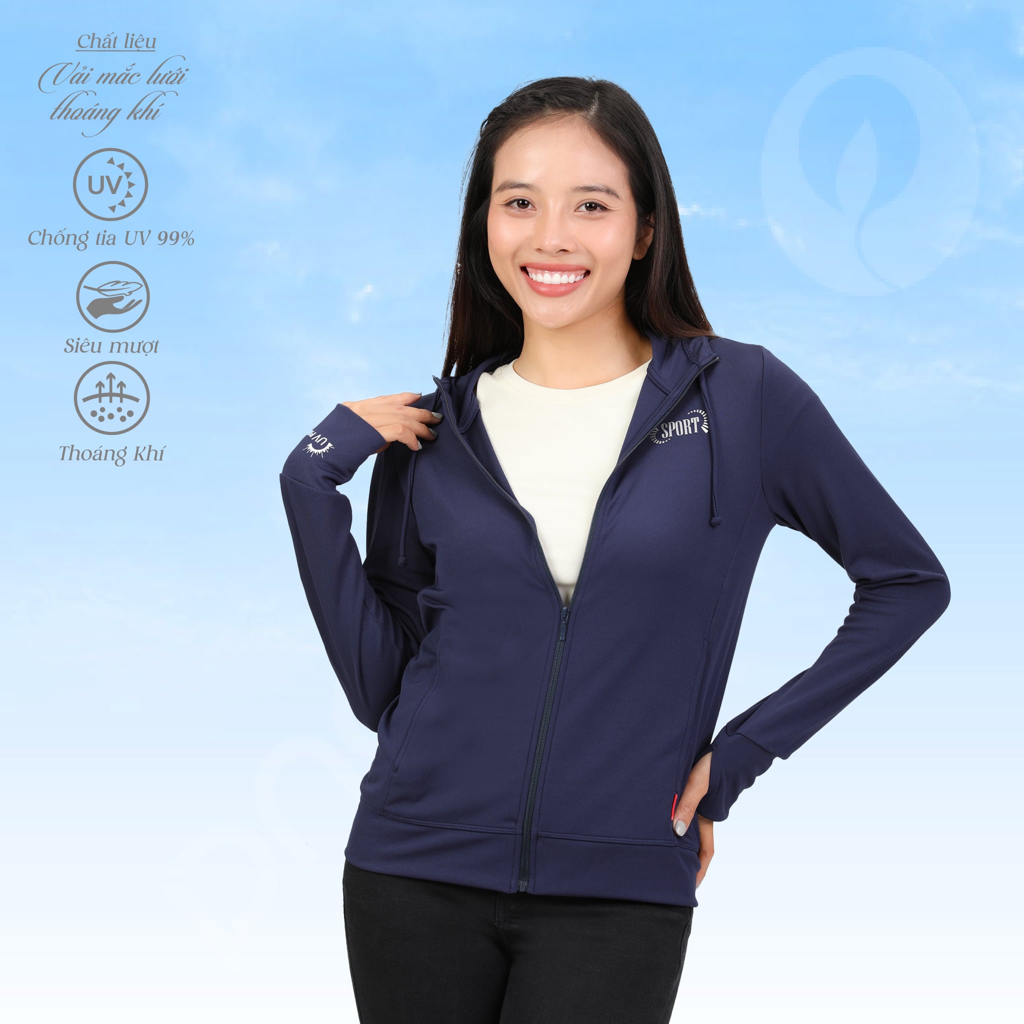 Áo khoác nữ chống nắng, chống UV chất poly mắc lưới siêu thoáng khí 311p 1306 KHUYẾN MÃI - ƯU ĐÃI