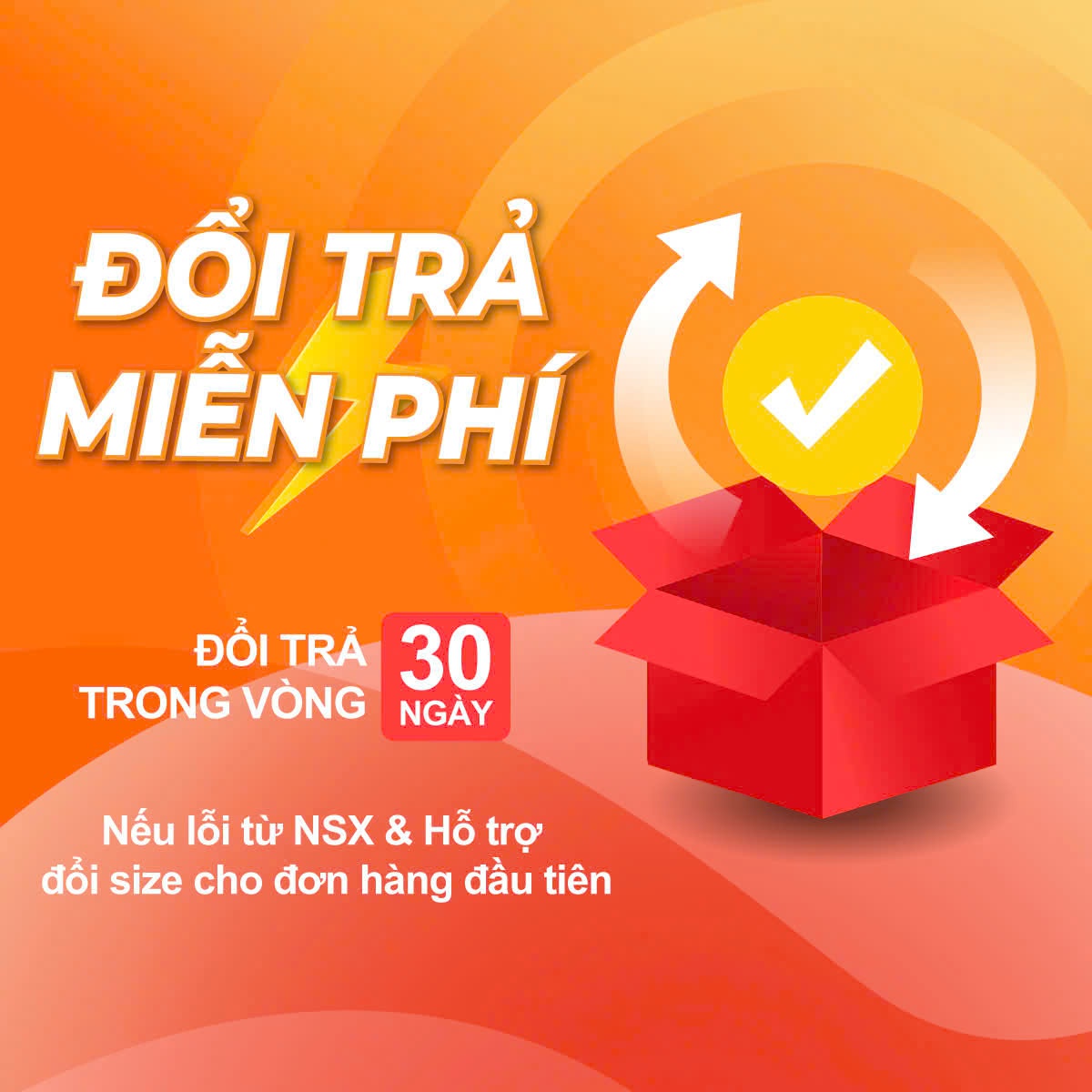 • Chính sách hài lòng 100% (xem chi tiết) Được đổi size miễn phí khi lần đầu mua hàng - 30 ngày đổi trả nếu lỗi từ nhà sản xuất áp dụng sản phẩm còn nguyên tem nhãn.