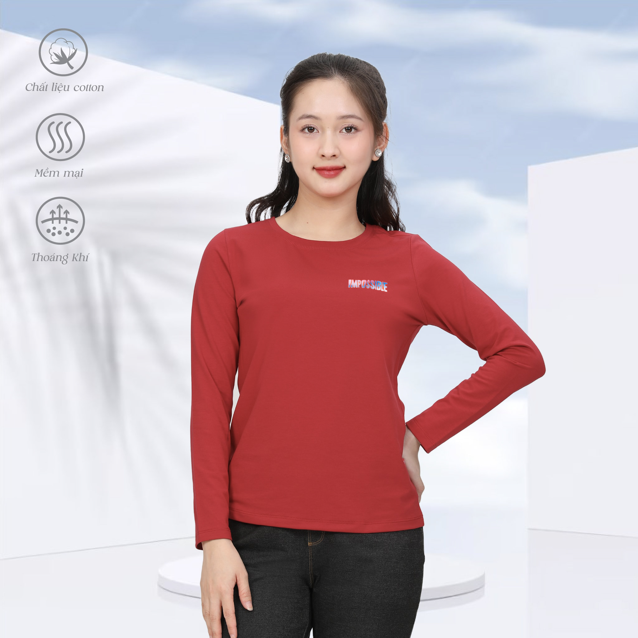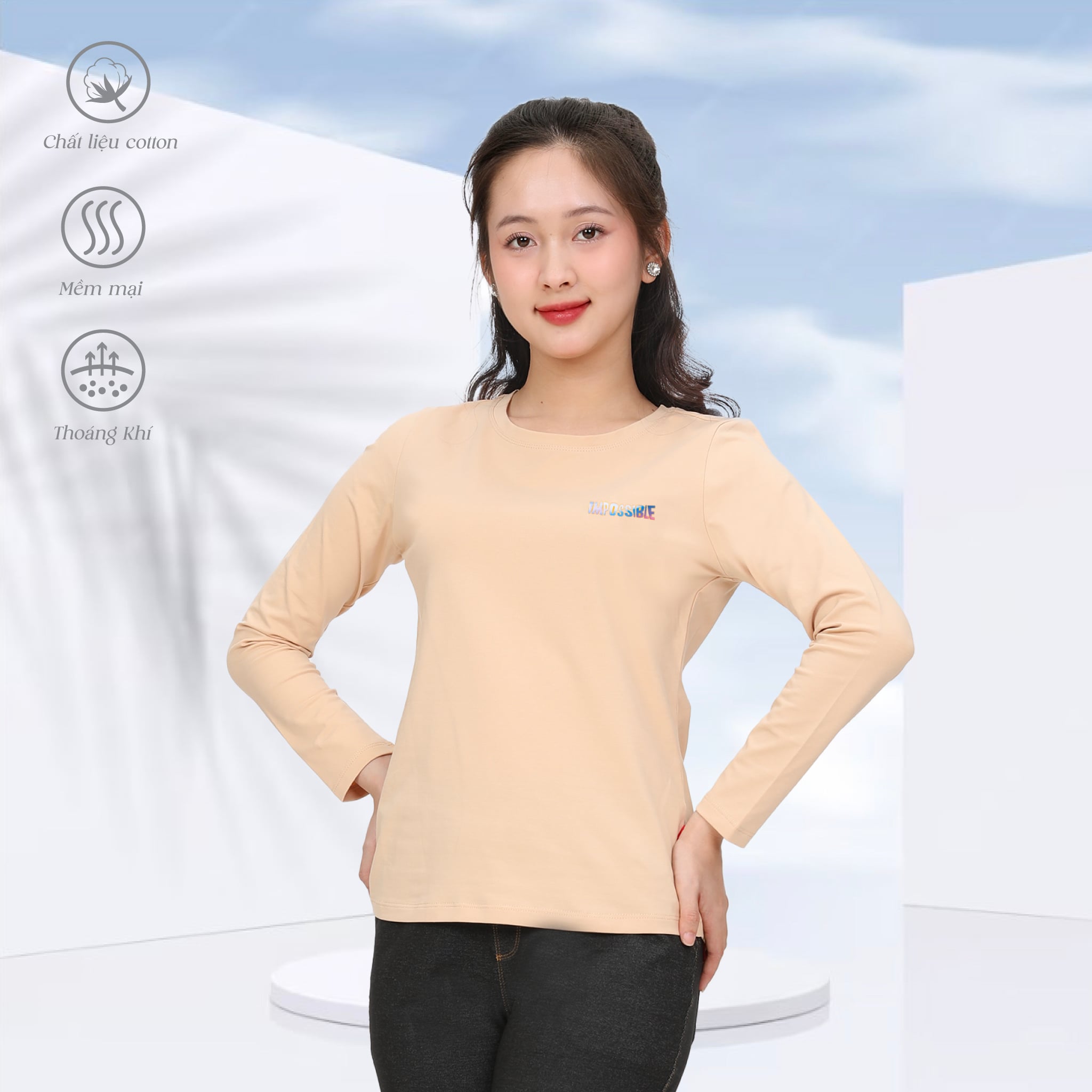 Áo thun nữ tay dài Cổ Tròn chất cotton siêu mát 020p 0270