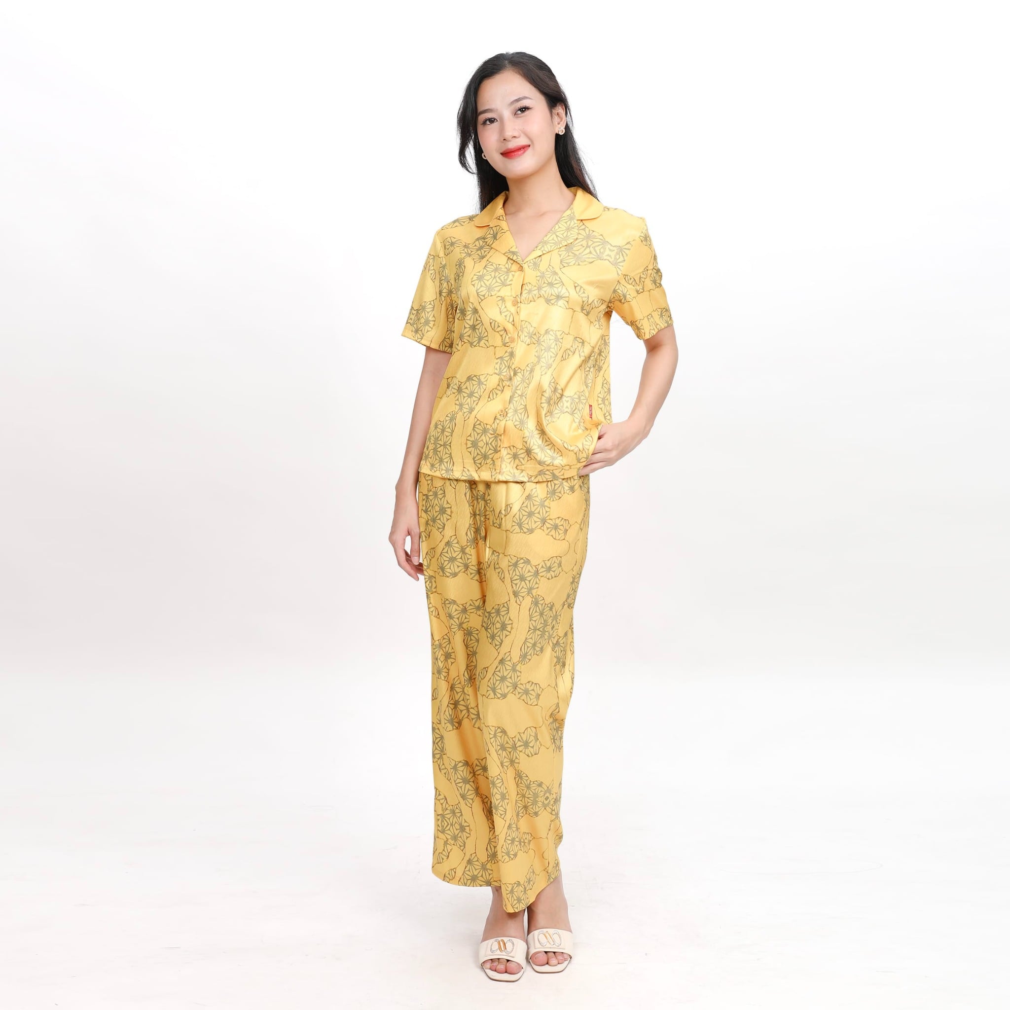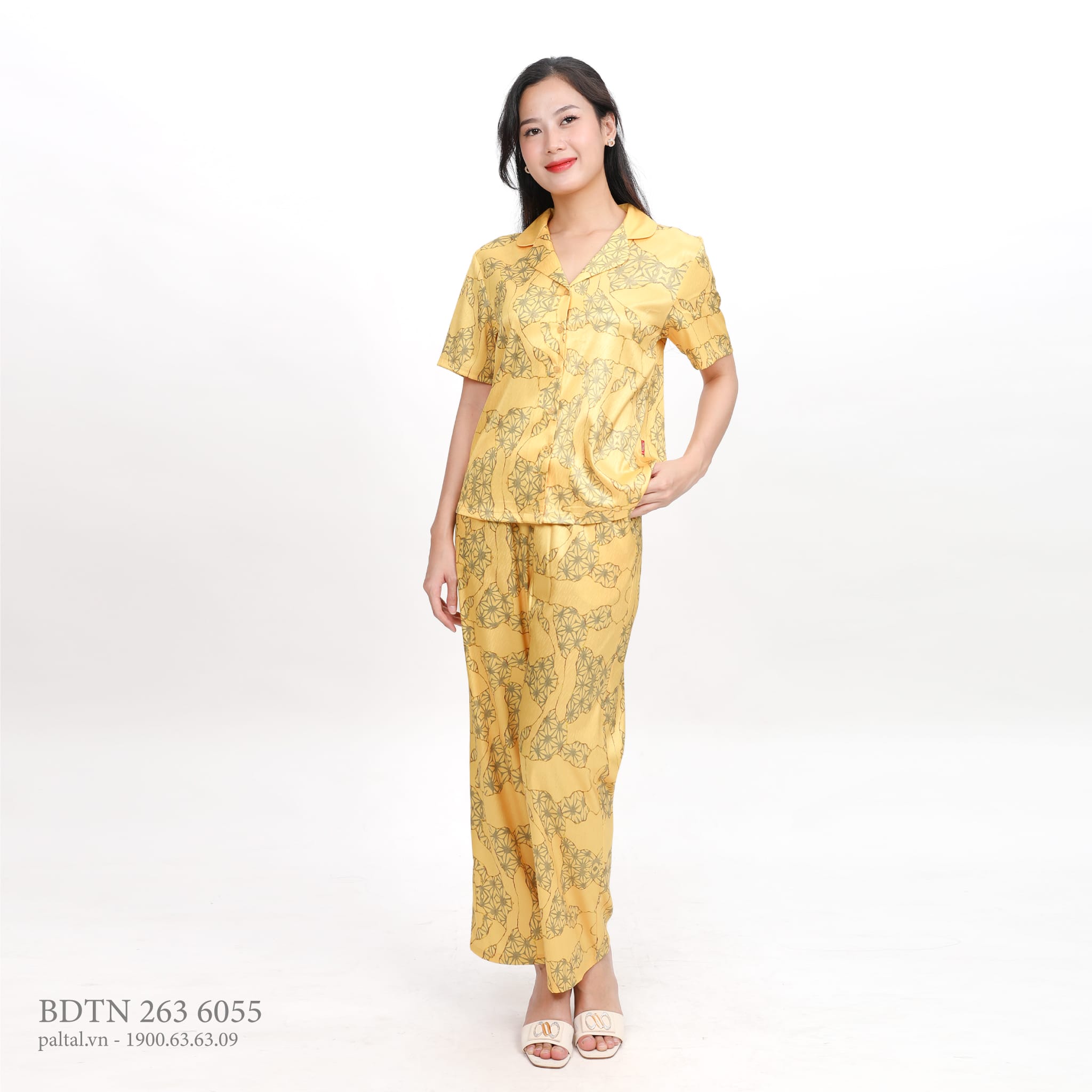 Set đồ bộ nữ kiểu quần dài tay ngắn in hoa chất lụa nhung BDTN 263p 6055 KHUYẾN MÃI - ƯU ĐÃI