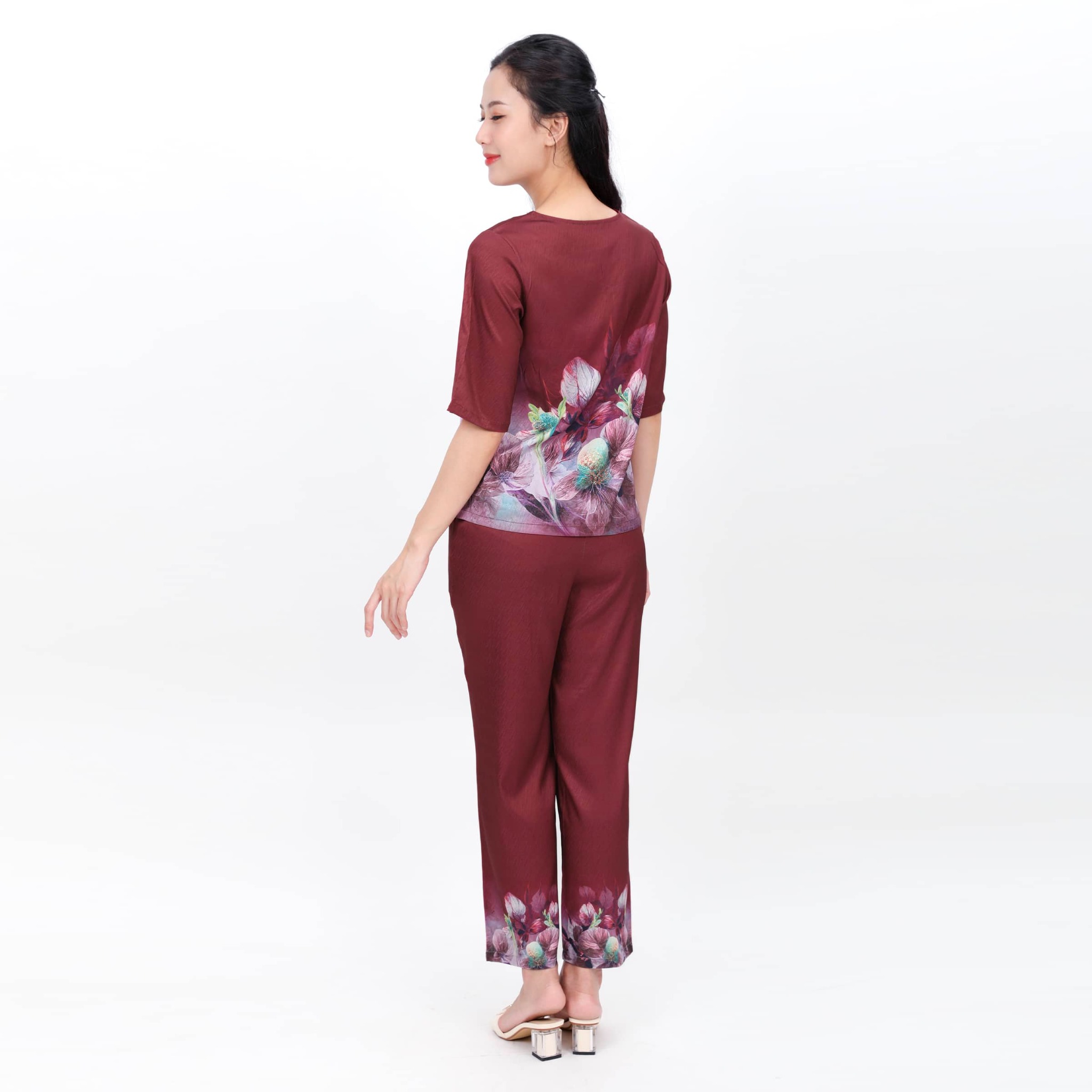 Set đồ bộ nữ kiểu quần dài tay ngắn chất lụa nhung 263p 6050 KHUYẾN MÃI - ƯU ĐÃI