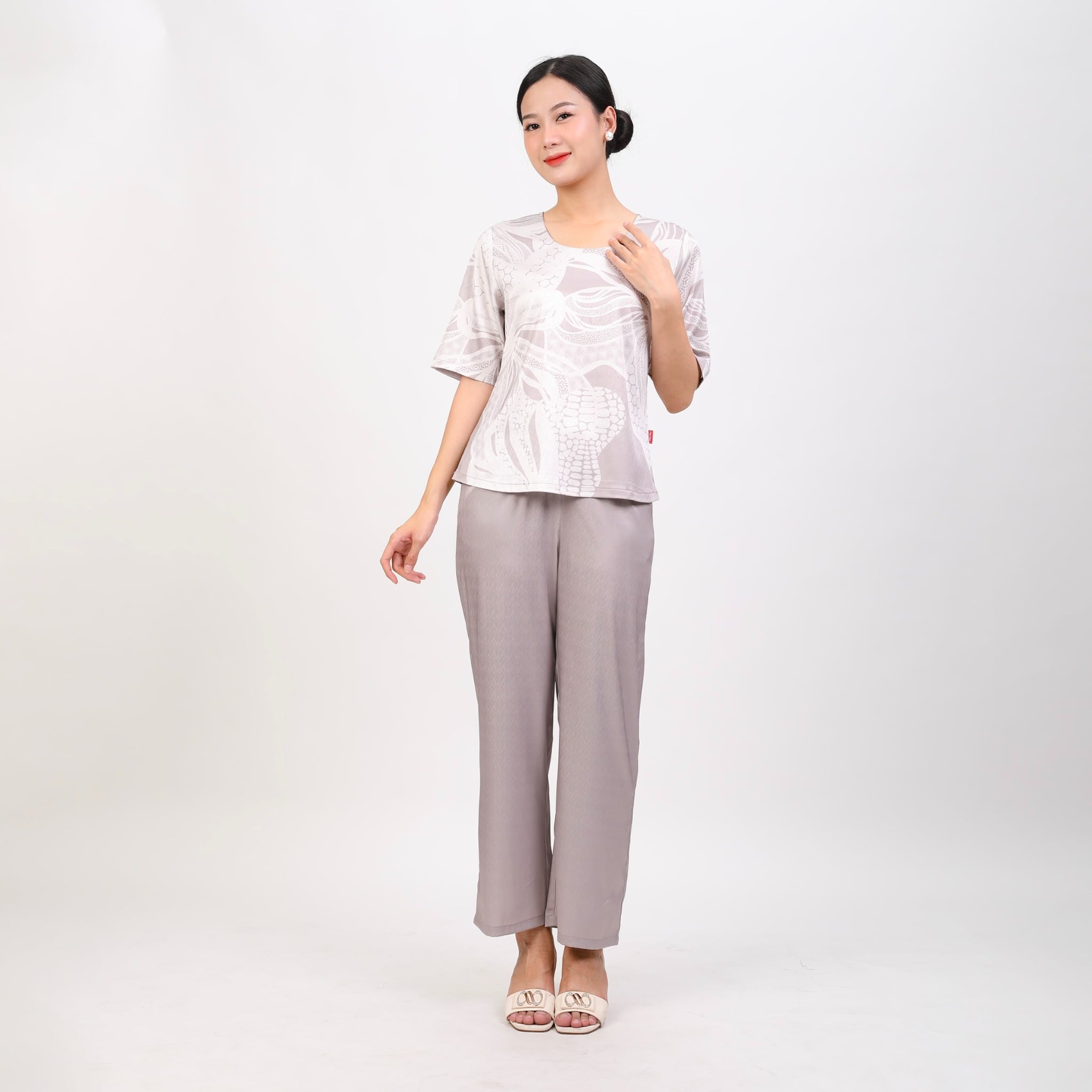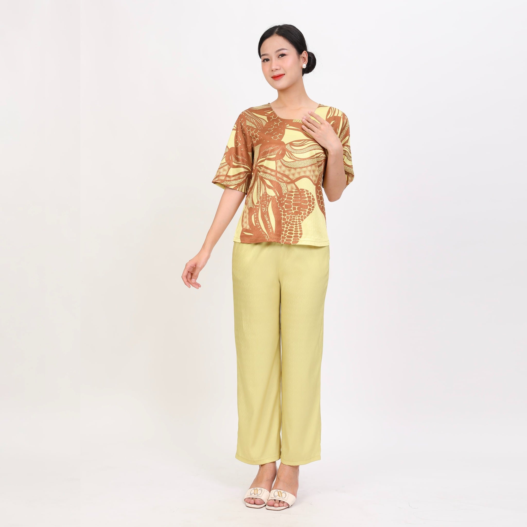 Set đồ bộ nữ kiểu quần dài tay ngắn chất lụa nhung 263p 6066 KHUYẾN MÃI - ƯU ĐÃI