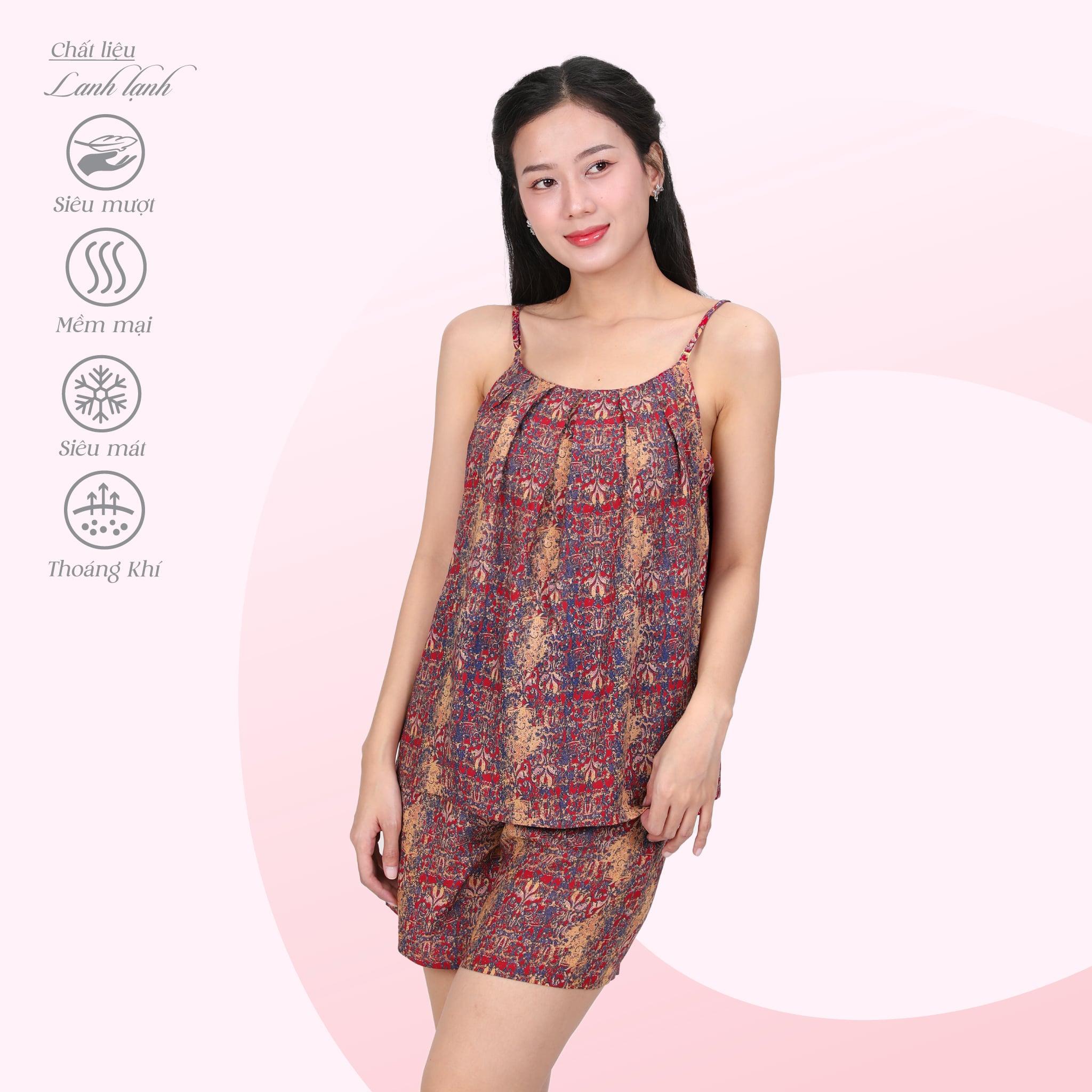 Set đồ bộ nữ kiểu quần đùi dây chất lanh lạnh 255p 2123