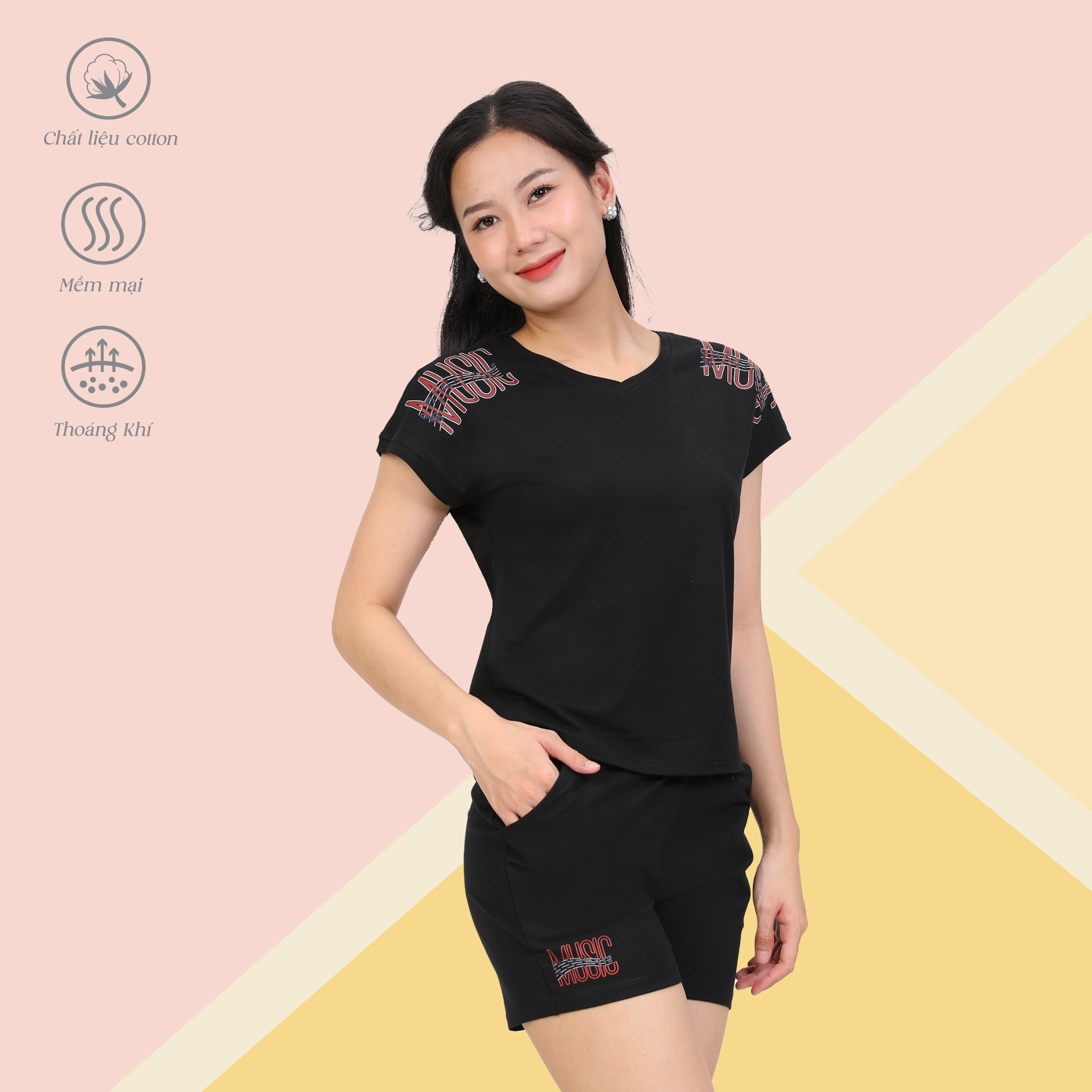 Set đồ bộ nữ kiểu quần đùi tay liền chất cotton siêu mát 025p 5204 KHUYẾN MÃI - ƯU ĐÃI